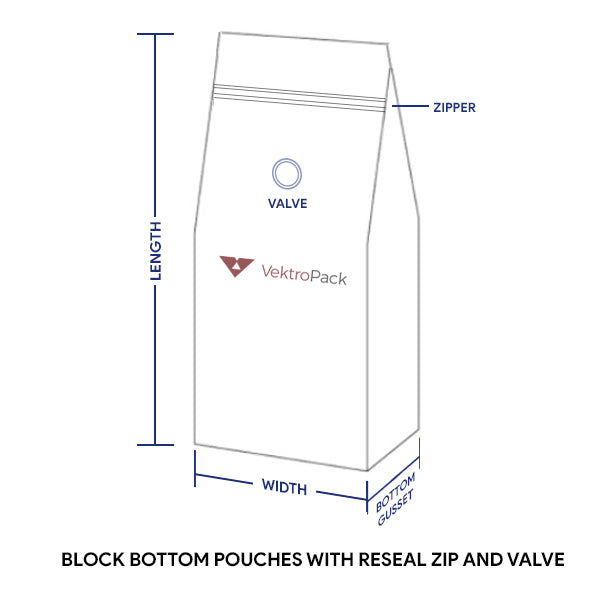 Kraft Block Bottom Pouches with Reseal Zip and Valve - 1 KG